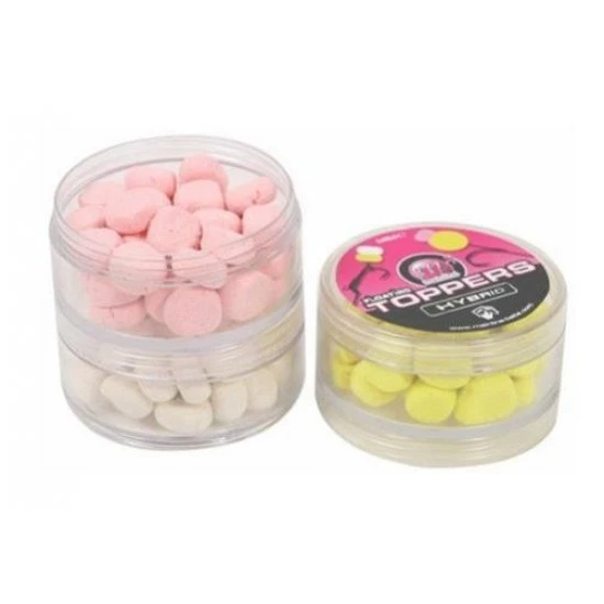 Mainline Toppers zijn, zoals de naam al aangeeft drijvende hookbaits perfect voor het ‚toppen‘ van andere hookbaits, hoewel de veelzijdigheid van deze kleine edelstenen daar niet stopt. Ja, het woord veelzijdigheid belichaamt echt waar de Toppers voor staan! Geweldig voor het toevoegen van wat drijfvermogen aan bodemaas om kritisch uitgebalanceerde sneeuwpopachtige presentaties te maken, die uw haakaas ook een visuele stimulans zullen geven om visonderzoek te bevorderen. Het kleine formaat of de maïsachtige vorm van de Toppers betekent dat ze op zichzelf ook uitstekende enkele haakaas maken – perfect voor solide PVA-zakvissen of Zig Rigs. Talrijke Toppers kunnen ook op elkaar worden gestapeld voor nog een andere haakaas-opstelling, met alle rigopties opnieuw vergroot door de drie kleuren (wit, geel en roze) geleverd in een nette, uit drie delen bestaande, schroefbare stapelaarpot.